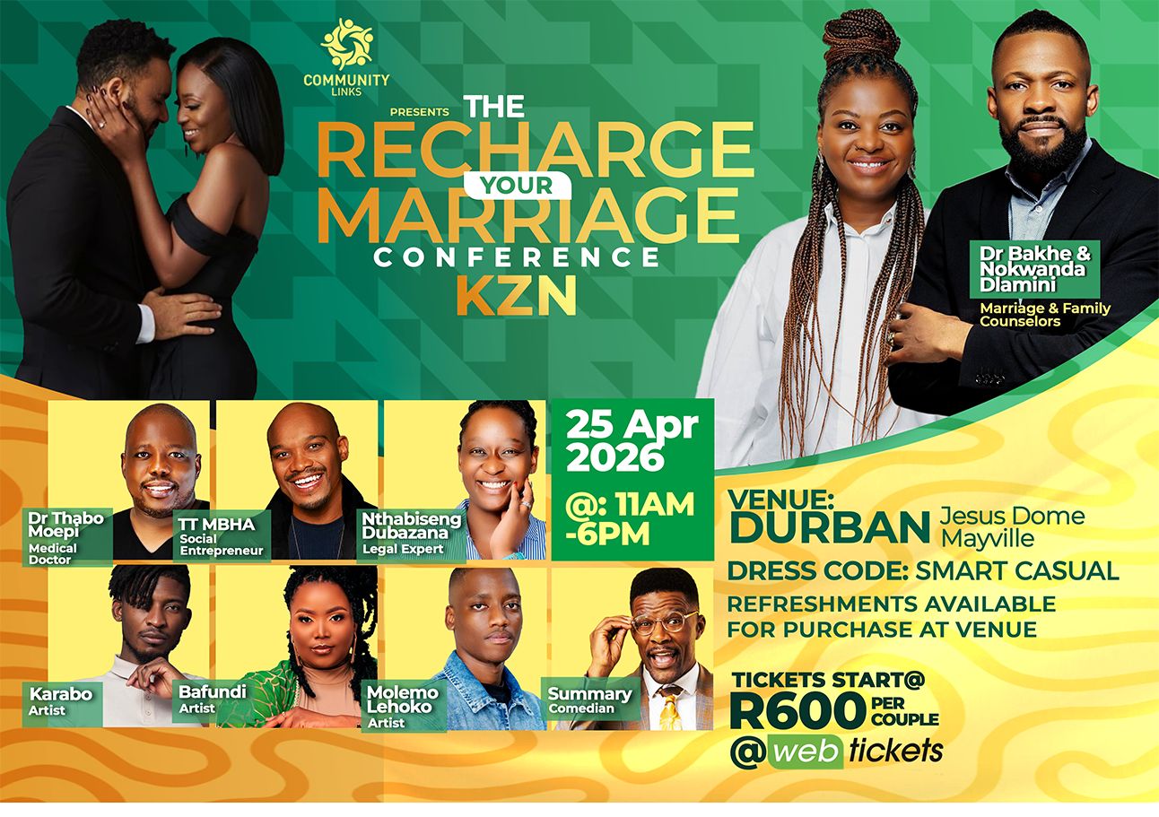 Join us for The Recharge Your Marriage Conference in Kwa-Zulu Natal, a transformative event designed to strengthen and renew your relationship.